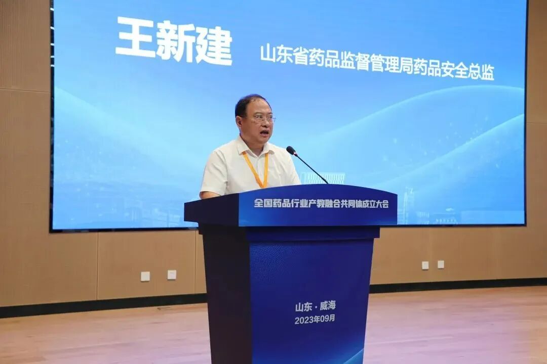 9月22日,全国药品行业产教融合共同体成立大会在威海召开。全国药品职业教育教学指导委员会秘书长罗杰,山东省市场监督管理局二级巡视员王立河,山东省教育厅职业教育处副处长宋健,山东省药品监督管理局药品安全总监王新建,山东新华制药股份有限公司党委副书记、董事、总经理徐文辉,党委委员、副总经理魏长生,山东大学药学院副院长徐文忠,中国药科大学继续教育学院培训部主任李琪,沈阳药科大学继续教育学院院长初智铭,国家药监局南方医药经济研究所数据中心总监蒋孙明,山东药品食品职业学院院长张晖及110家成员单位代表出席大会,山东药品食品职业学院党委书记李忠祥主持会议。