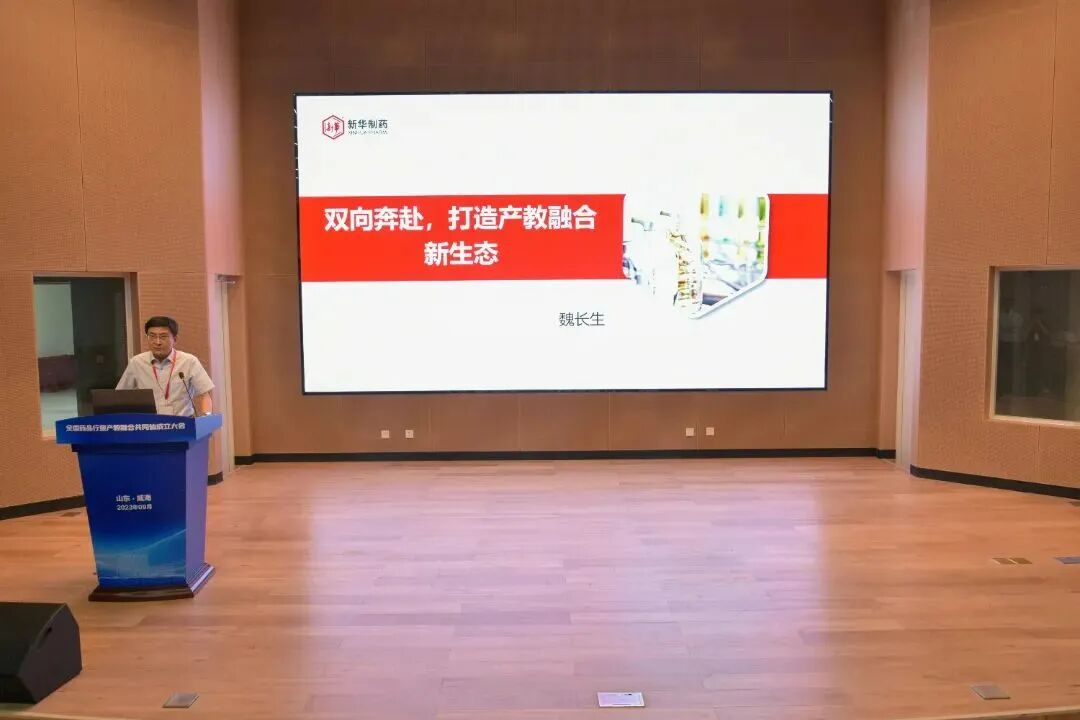 在产教融合论坛环节,大会特邀四川科伦药业股份有限公司、广东食品药品职业学院、河北化工医药职业技术学院、山东药品食品职业学院和山东新华制药股份有限公司5家单位作典型发言。新华制药党委委员、副总经理魏长生,以“双向奔赴,打造产教融合新生态”为主题,分享了产教融合经验。
